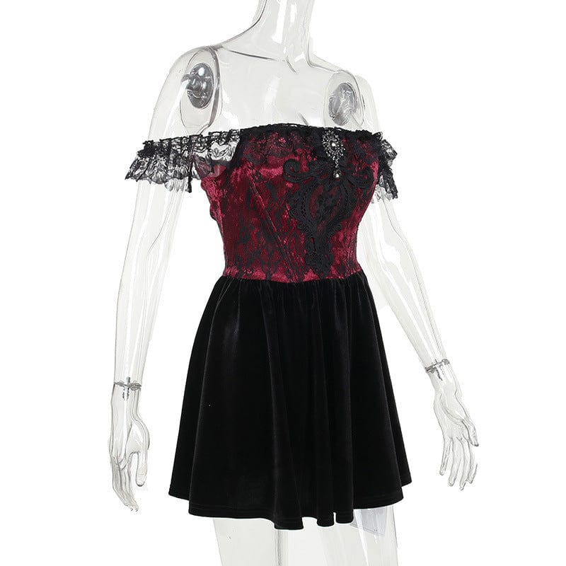 Schulterfreies Gothic-Kleid aus Samt mit Spitze für Damen
