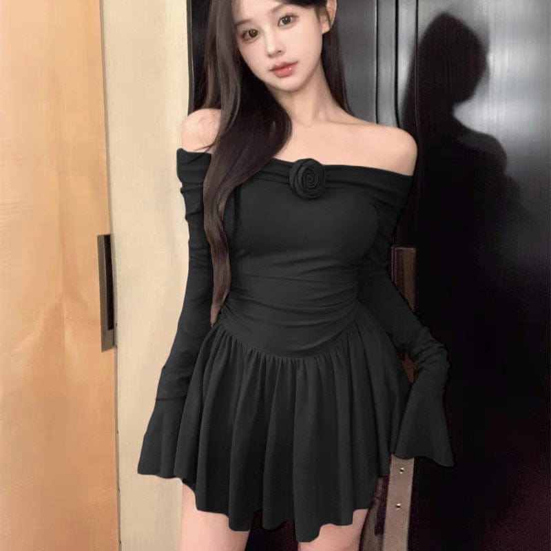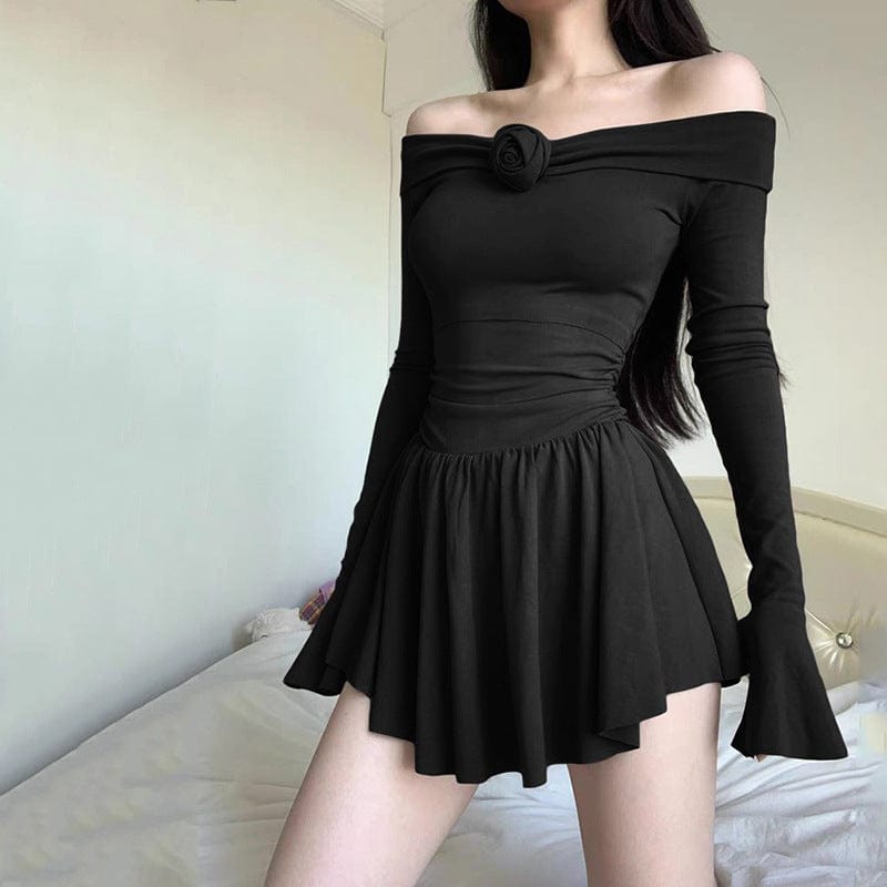 Warum unser Schulterfreies, kurzes Kleid mit ausgestellten Ärmeln und Punk-Blume?