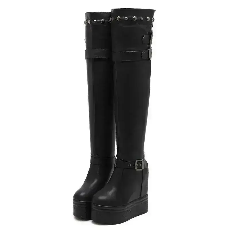 - Erhöhte Schuhe: Mit einem imposanten 14 cm hohen Keilabsatz und einer 5,5 cm hohen Plattform, verleihen diese Stiefel Ihrem Outfit einen sexy und dominanten Touch.