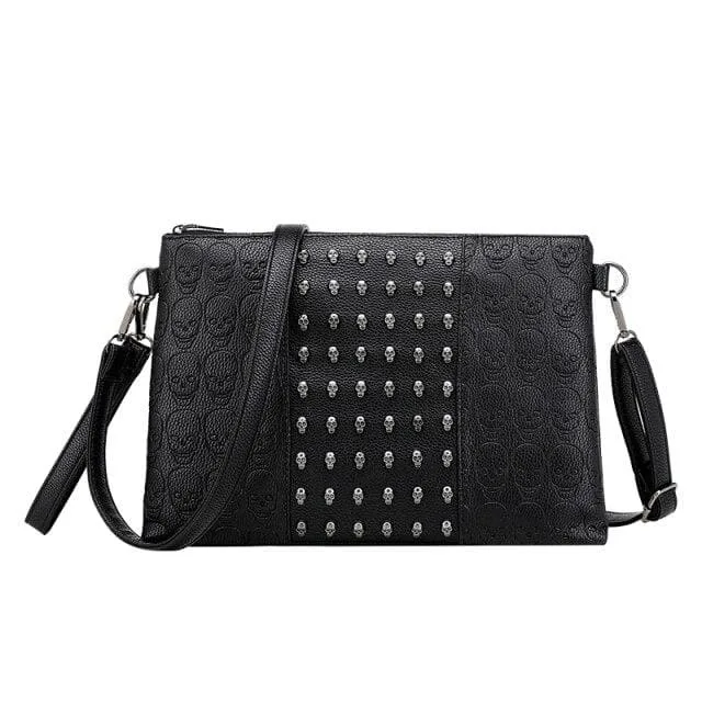 - Stilvolles Design: Die Kombination aus schwarzer Farbe, Totenkopf-Muster und silbernen Details verleiht der Tasche eine einzigartige und auffällige Optik.