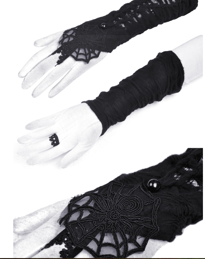 Schwarzer Gothic Fäustling mit Netz und Spinnennetz