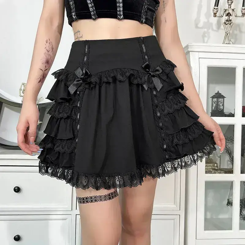 - Einzigartige Gothic-Details: Mit seinen schwarzen Spitzen und dem praktischen Reißverschluss auf der Rückseite bietet der Rock nicht nur Stil, sondern auch Funktionalität.