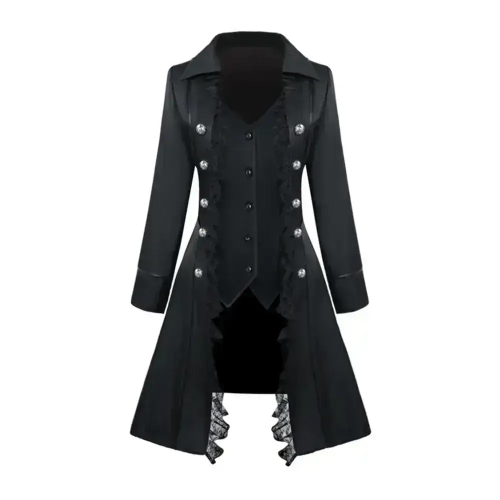 - Stilvoller Gothic-Look: Der taillierte Schnitt und das ausgestellte Design verleihen diesem Mantel eine elegante Silhouette.