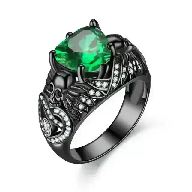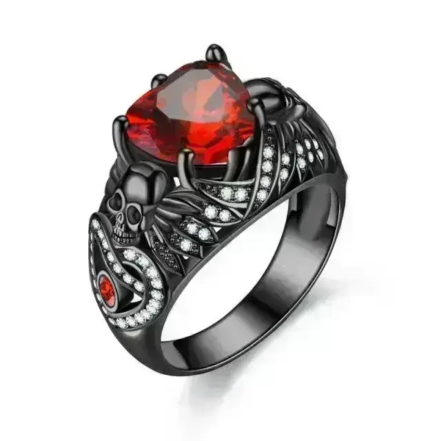 - Hauptvorteil 1: Auffälliges Design mit einem geflügelten Totenkopf und einem herzförmigen Zirkonstein – ein echter Hingucker.