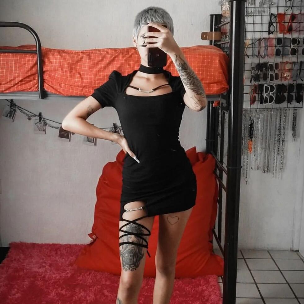 Schreibe die erste Rezension für „Schwarzes kleines Kleid mit Neckholder-Ausschnitt für Damen im Punk-Stil“