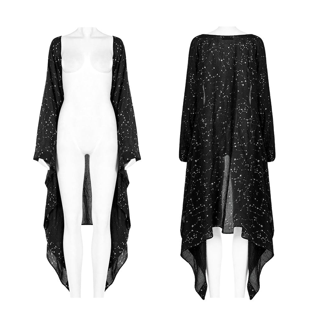 Verpassen Sie nicht die Gelegenheit, diesen einzigartigen Unregelmäßiger Gothic-Mantel mit Sternausschnitt für Damen in Ihren Kleiderschrank zu holen. Der perfekte Mantel, um Ihren Gothic-Style zu vervollständigen und Aufmerksamkeit zu erregen!