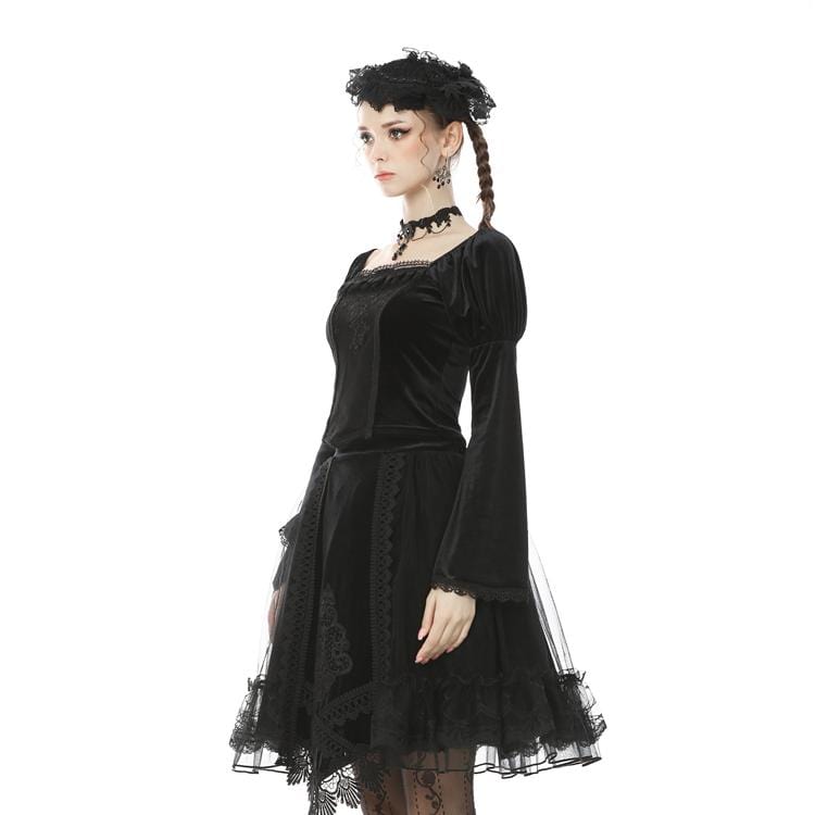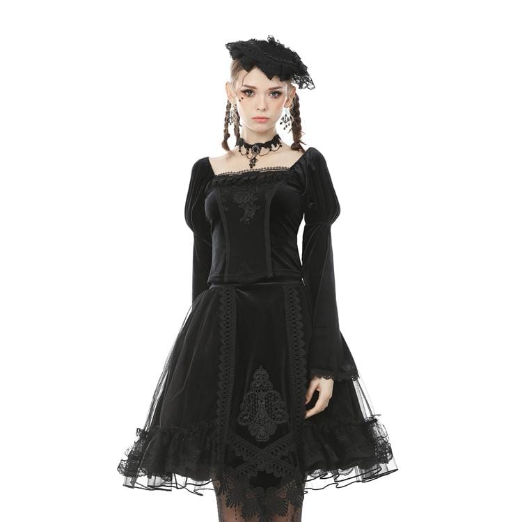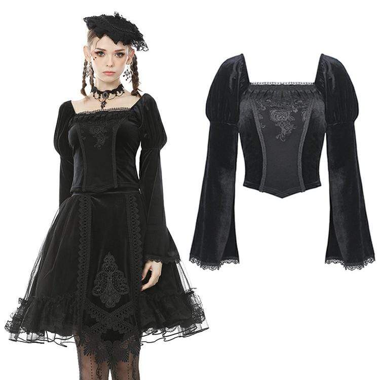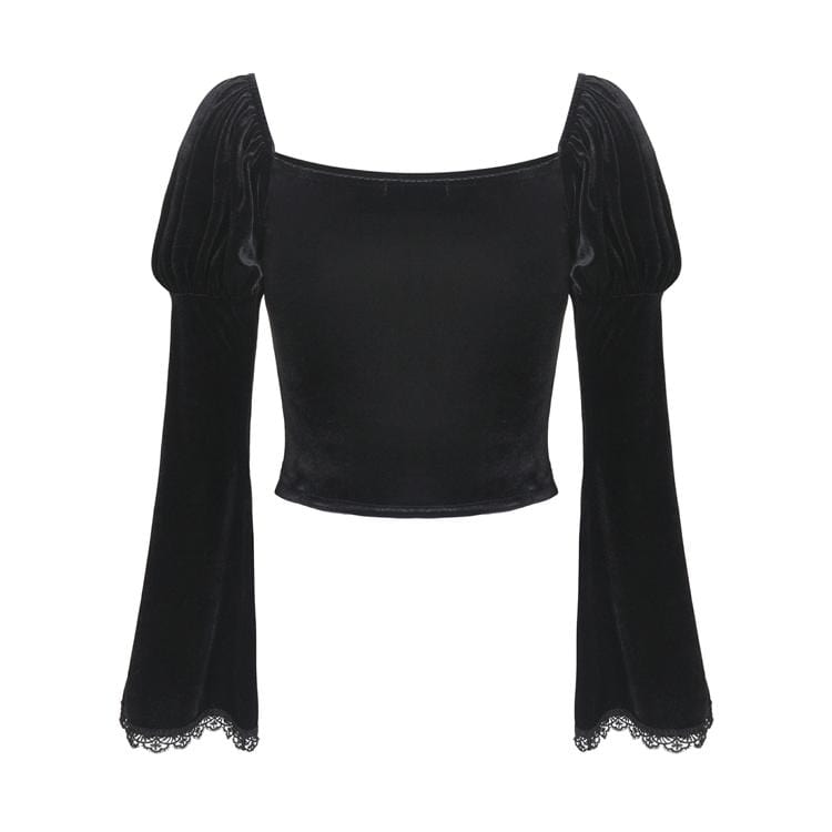 Vintage-Gothic-Velvet-Tops mit quadratischem Kragen und Puffärmeln für Damen