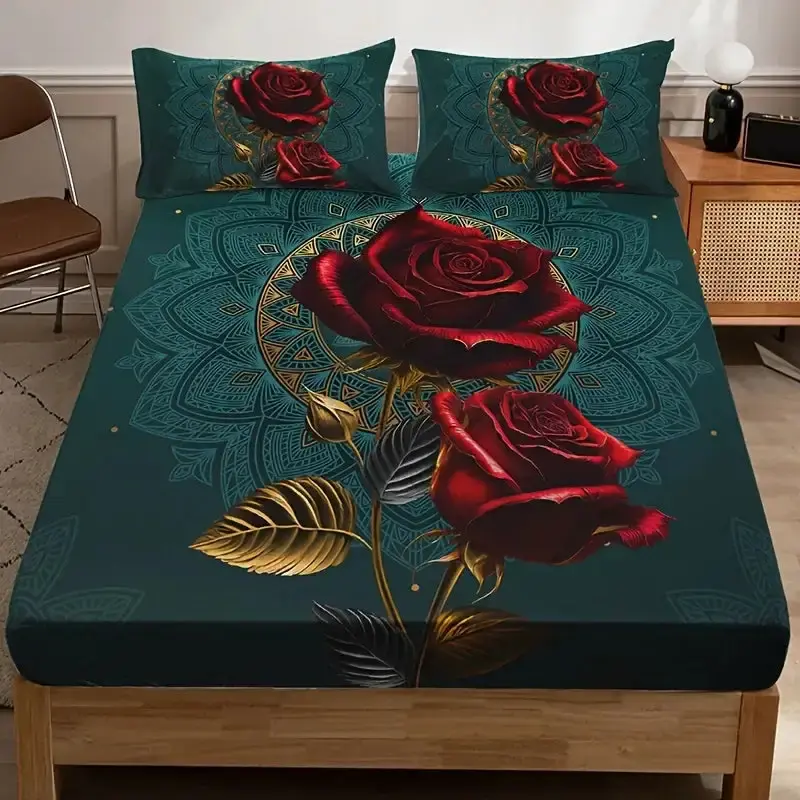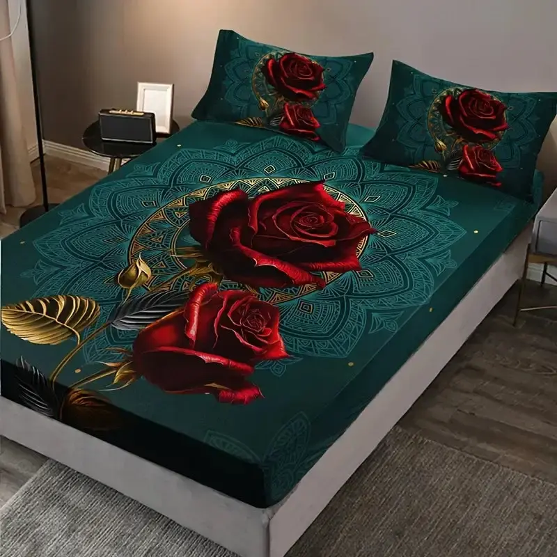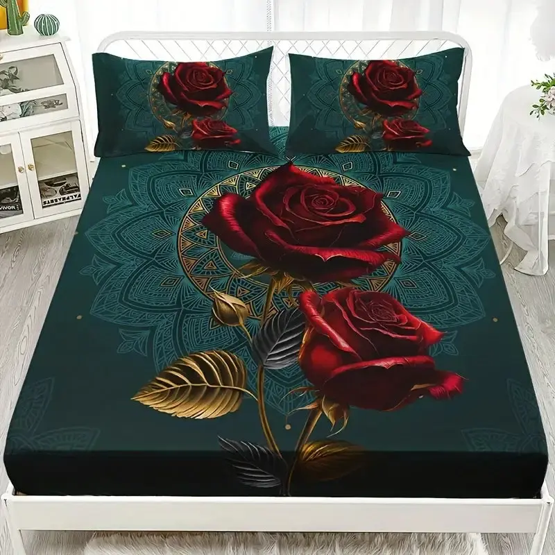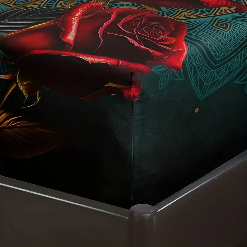Weiches, atmungsaktives 3D-Gothic-Rosen-Bettlaken-Set – verleiht jedem Schlafzimmer oder Gästezimmer einen stilvollen Gothic-Look.
