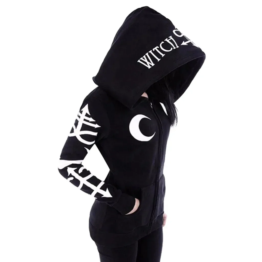 - Okkulte Designs: Eindrucksvolle Monddetails und mystische Symbole, ergänzt durch das markante Wort „WITCH“.